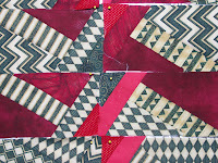 As mentioned previously, Not Til D25 is based on a block pattern from Kumiko Sudo’s book “East Quilts West”. Our construction is made up of 160 rectangles, each with five varying sized cuts of fabric. The images of the Not Til D25 were taken on the top of a King size mattress.